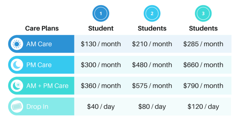 Extended Care operates on all 180 regular school days. Tuition is conveniently divided into 10 equal monthly payments, each covering 18 days of care, offering families a simple and predictable payment structure.